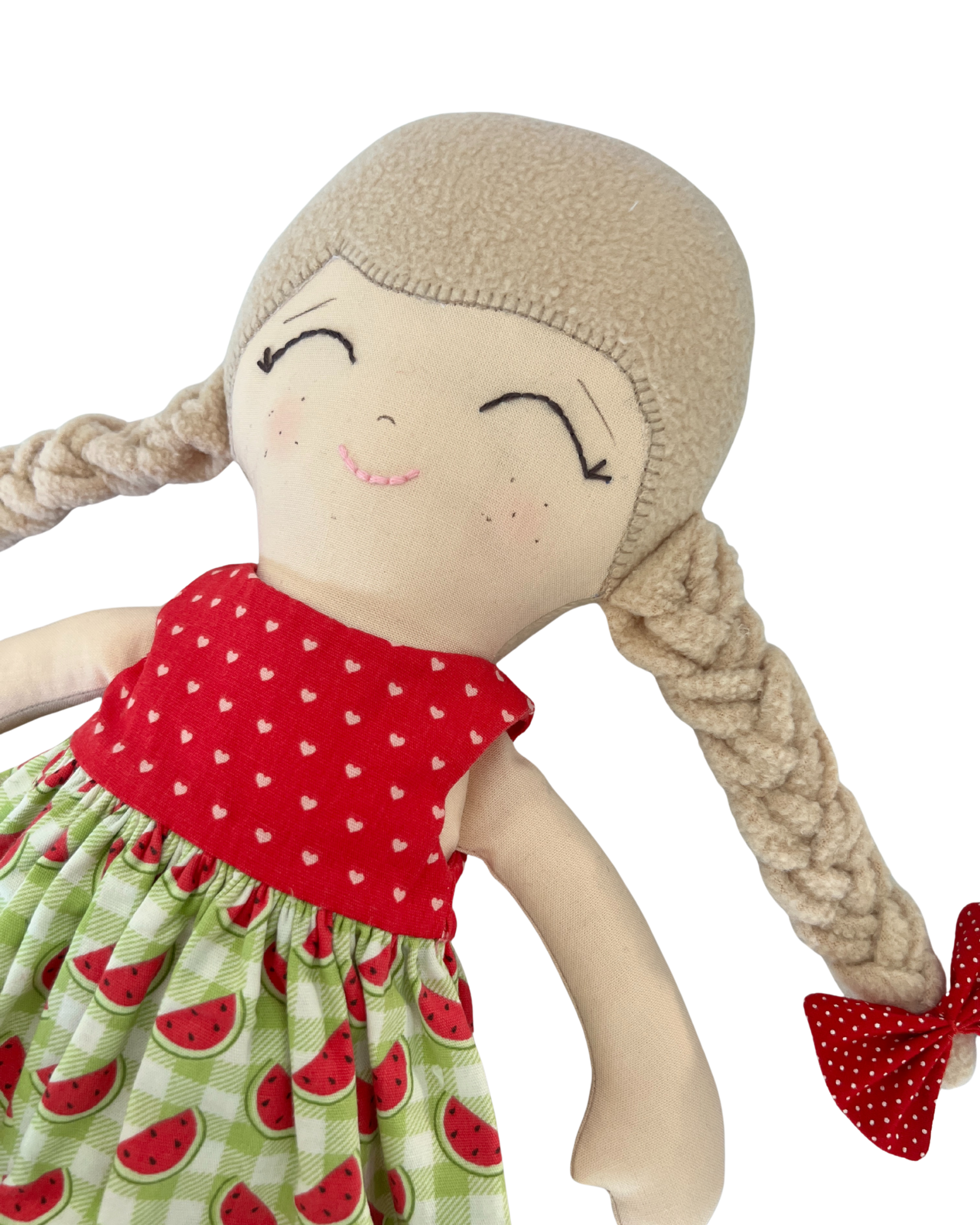 Millie comes with a cute vibrant dress, red bows with felt shoes.