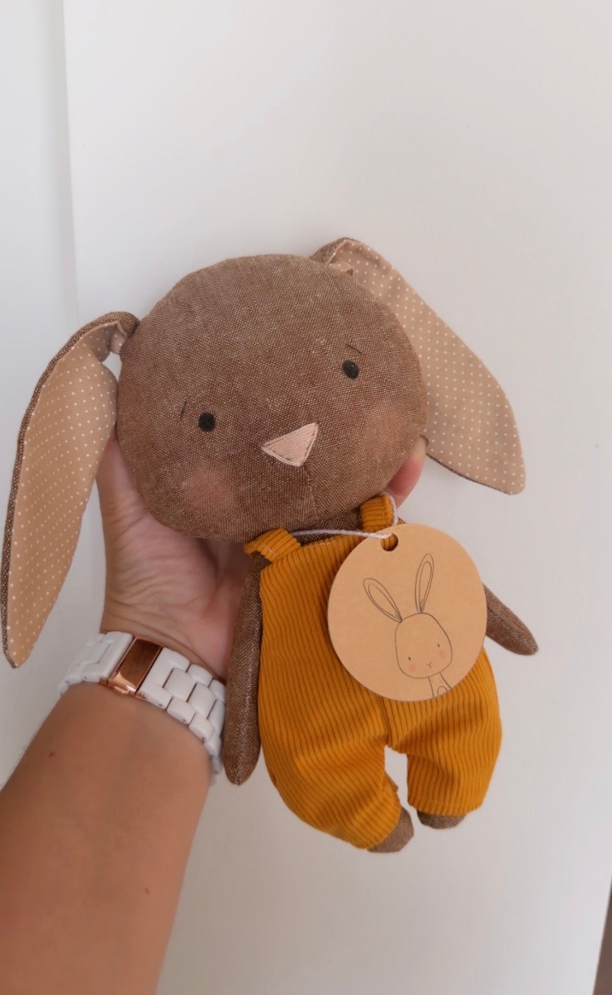 With its floppy ears, gentle face and warm little outfit, this bunny is designed to become a child’s special friend.