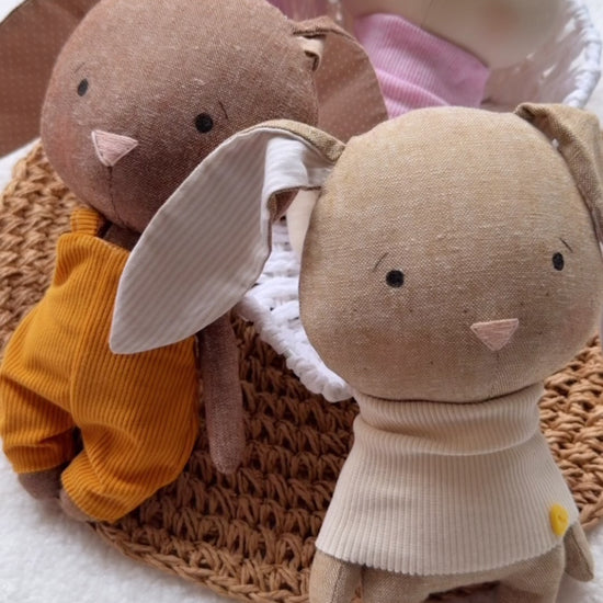 This soft handmade cloth tiny bunny is carefully crafted with love, tiny stitches and quality linen fabrics to create a timeless toy made for hugs, comfort and imagination.
